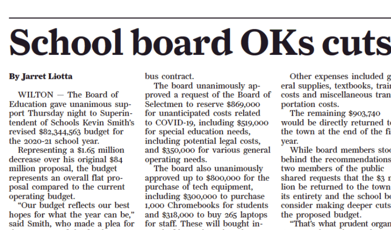 "Because of this, Rutishauser stressed the only way for citizens to be heard and the board to gauge public opinion is for people to write in. The board may be emailed through wiltonct.org or at boardoffinance@wiltonct.org."