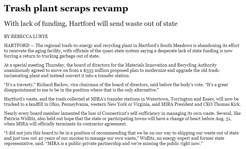 GARBAGE TO THE FORE: https://www.ctnewsjunkie.com/archives/entry/20200529_mira_trash-to-energy_plant_no_longer_viable_without_state_help/#more