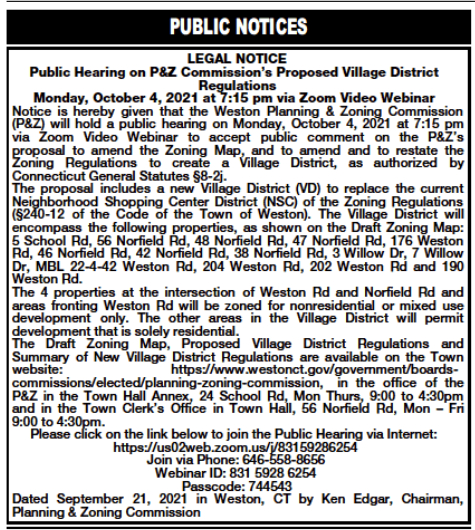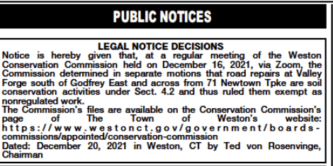 - Why does the Town of Weston have to create a Public Notice?