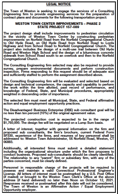 OTHER ITEMS POSTED FOR TOWN OF WESTON NOT NEEDING TO BE IN NEWSPAPER OF RECORD