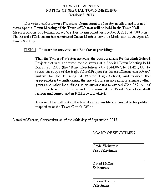 meeting September 25, 2013. Special Town Meeting votes unanimous